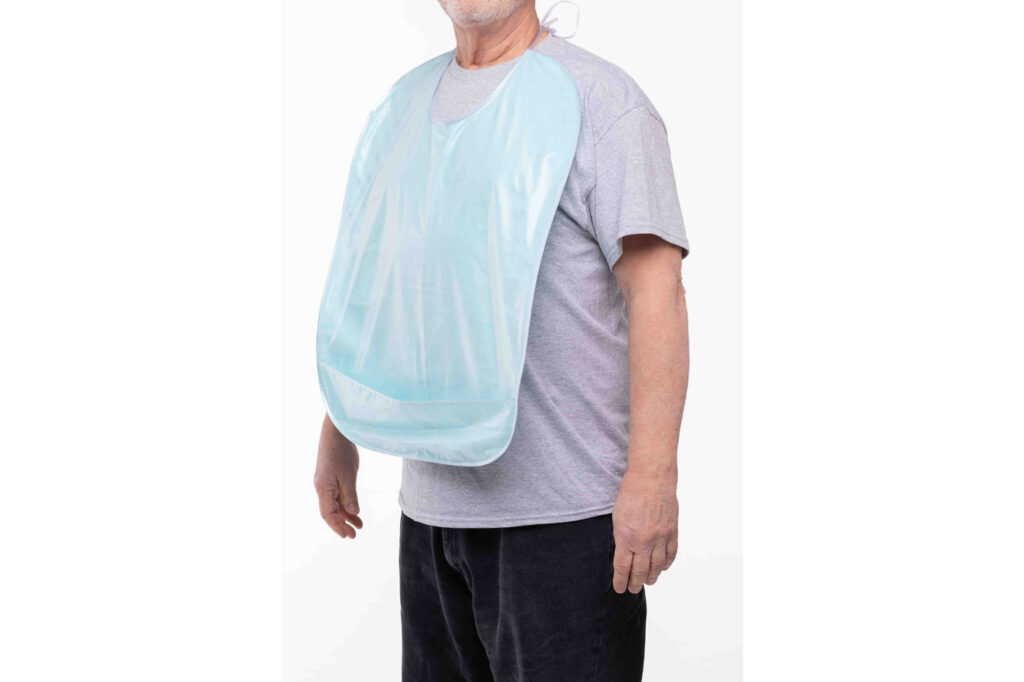 Adult size Bibs and Smocks are designed to keep the wearer clean during mealtime.